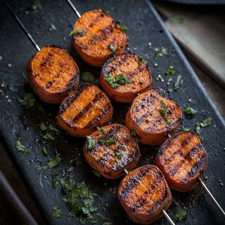 Découvrez la douceur naturelle de la patate douce, sublimée par une cuisson au grill qui lui apporte ce croquant irrésistible. Ces brochettes sont l’équilibre parfait entre sucré et salé, un plaisir sain et savoureux.